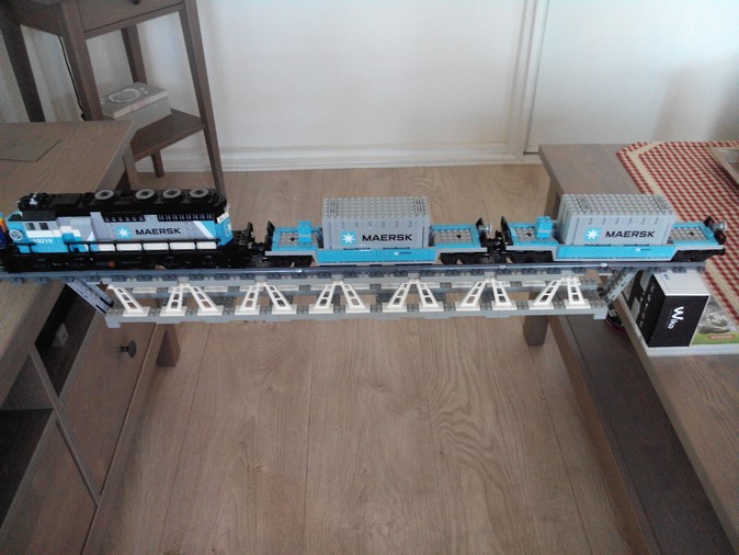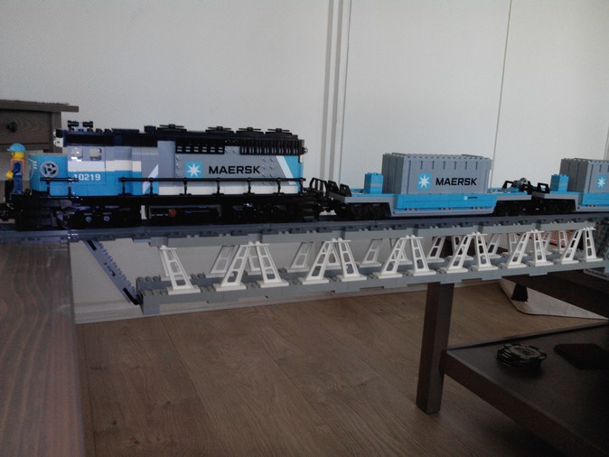 oui pour 103cm flexion de 4mm avec le train maersk complet et motorisé, j'ai fait le teste avec le train le plus lourd que j'ai, pas la peine de mettre 4kilos!!!legoman a écrit :Comme j'ai déjà dit, il est très bien ce pont; 103 cm de long as-tu mesuré la flexion au milieu avec une charge exemple 500 grammes ou plus. Pour des fortes charges, je pense que le technic est quand même plus approprié ( cela n'engage que moi )
