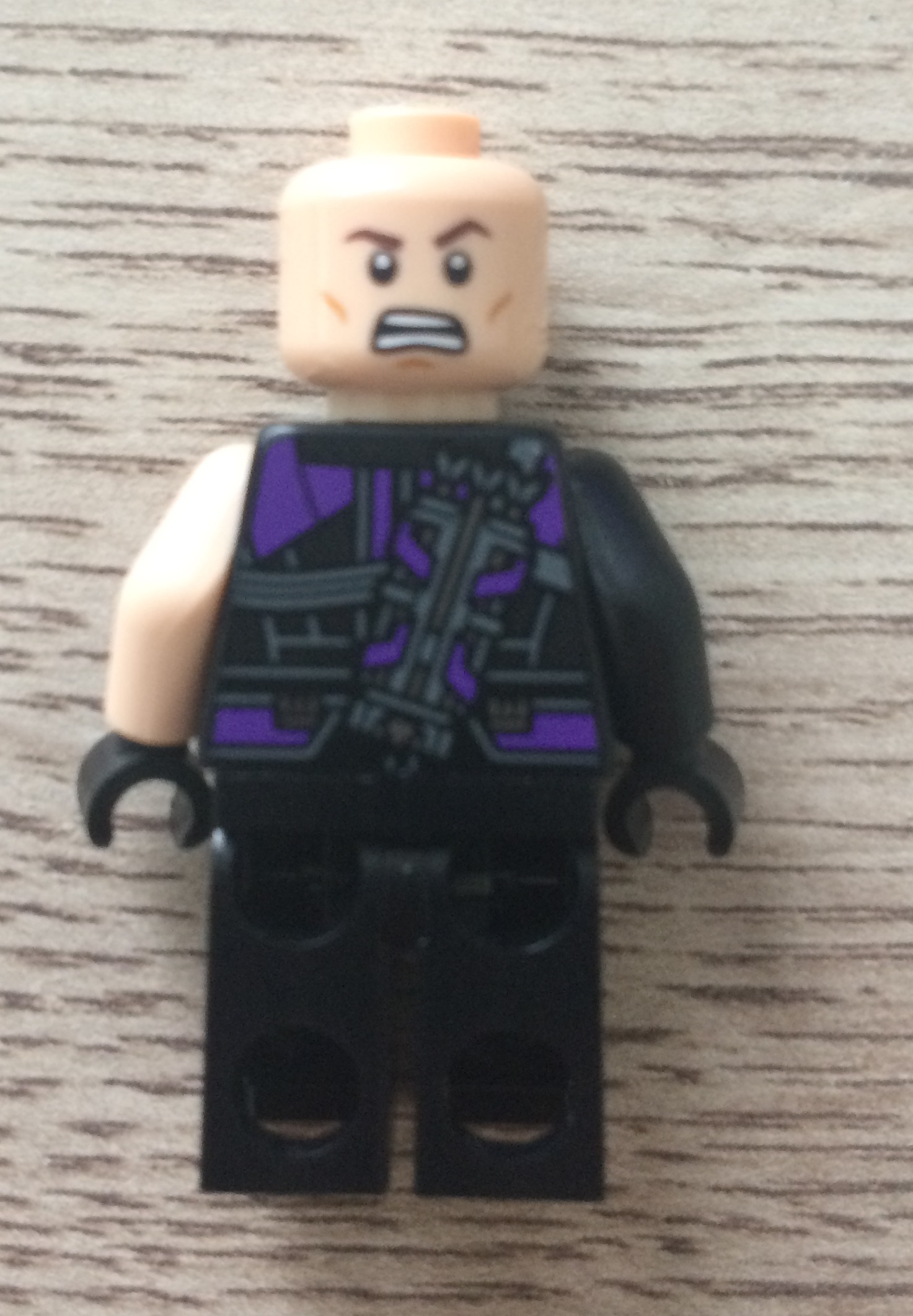 LEGO sait se renouveler et Hawkeye en est la preuve. Encore une nouvelle version bi-couleur de cette figurine dont la prédominance reste le noir. Aujourd'hui elle est associé au violet, couleur du personnage dans les comics. On a une jolie figurine , ou on peut constater de nombreuses poches type jean. Le carquois est encore présent dans le dos avec ses fléchettes et l'attache en triangle est présente à l'avant du torse. De plus, Lego a fait deux bras de couleurs différentes, c'est sympa. Enfin la figurine est la seule du set a disposer d'un double visage. C'est une belle réussite
